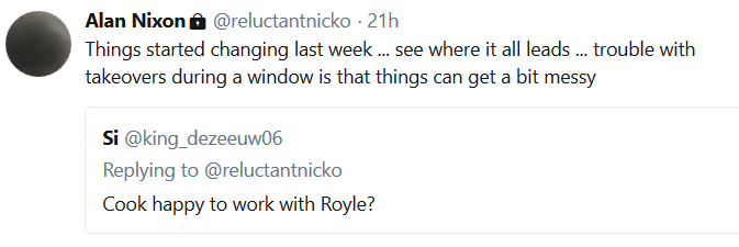 But six weeks have since passed, the takeover has not yet happened and the EFL transfer window closes on August 9. Paul Cook remains tight-lipped in his comments about the takeover, although Alan Nixon’s tweet gives us an inkling as to the climate in which the manager is currently working.