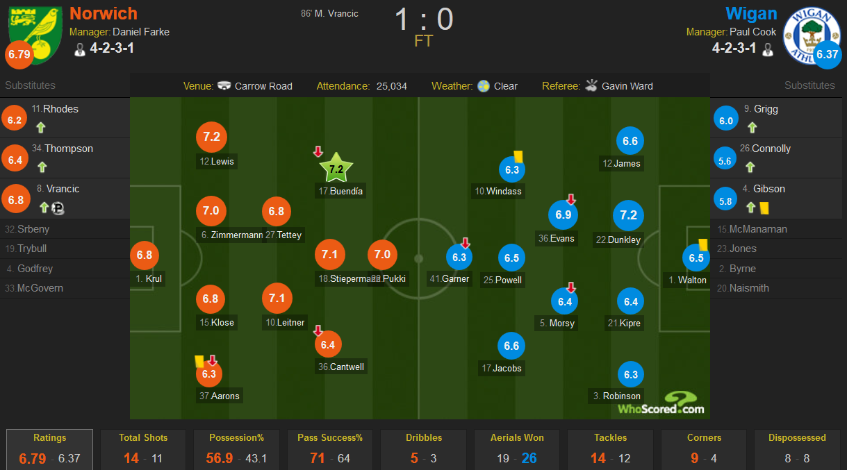 Norwich City 1 Wigan Athletic 0