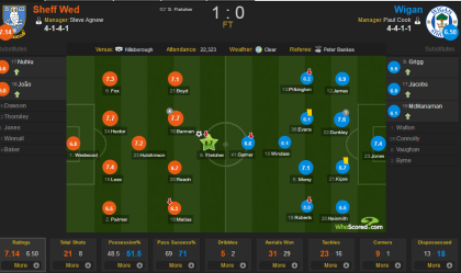 Following the uplifting display against Aston Villa we witnessed another depressing performance at Hillsborough. Two poor teams offered little by the way of entertainment, although the conditions did not make things easy for either side. The game was decided by an excellent strike by Wednesday centre forward Steven Fletcher, aided by a lack of challenge from the Wigan midfield. But the home side were deserved winners, having eight shots on target compared with one from a toothless Latics outfit.