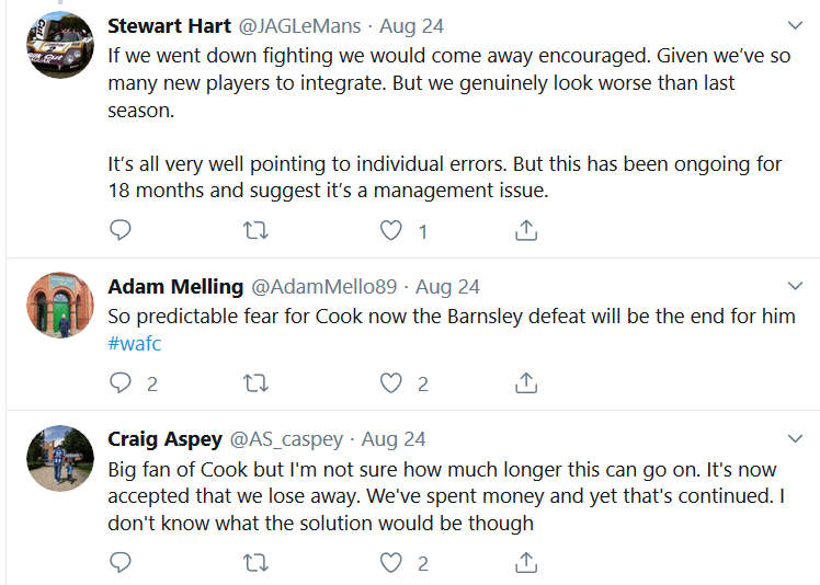 It’s an absolute shambles. Cook has taken us far as he can and it’s time for him to go. From his post match comments it sounds like he’s expecting it as well. I would act now and give the new guy the full season.