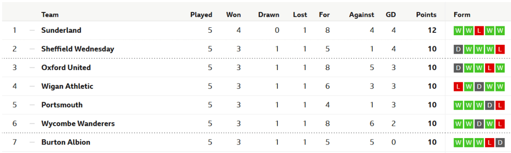 Table courtesy of bbc.co.uk