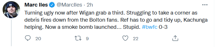 The way this fixture is going it’s attracting every trouble maker from both sides. And over the last few times we have played these lot it gets worse every game. our fans. Ripping down hoardings. Was not nice to see. Wigan Athletic has always been a family club. Shameful behaviour from both sets of fans.
