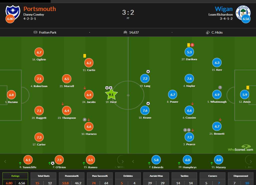 It is hard to disagree with Cowley’s comments. Pompey were the better team in the first half, despite Latics scoring two stunning goals. As the game progressed, Latics reverted to their default mode – hoofball. There was to be little respite for the beleaguered Wigan defence with those “hopeful” long balls throwing away possession, inviting further Portsmouth pressure. It was reminiscent of the worst of the Paul Cook days when Latics could not hold on to a lead away from home.