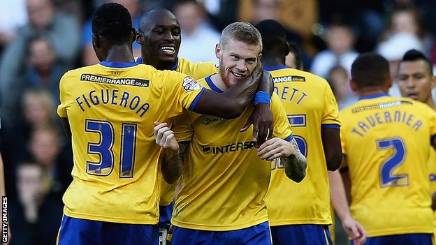 Uwe Rosler put out a well balanced team this time. James Perch moved across to right back to accommodate the return of Leon Barnett in the centre of defence. Emyr Huws returned in place of Don Cowie to form a useful-looking central midfield trio with Adam Forshaw and Roger Espinoza. Shaun Maloney and Callum were brought in to play wide with Marc-Antoine Fortune returning at centre forward.
