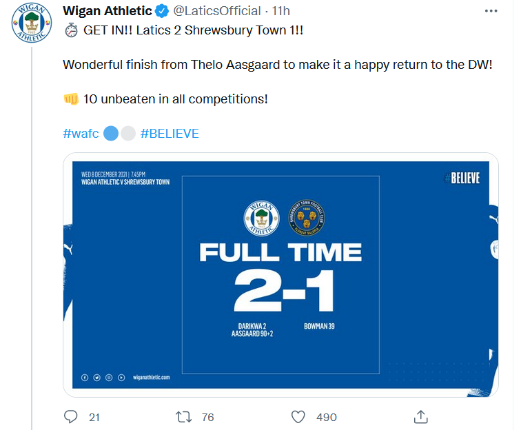 Let’s take a look at how fans reacted to the match through the message boards and social media. Our thanks go to the Vital Wigan – Latics Speyk Forum and Twitter for providing the media for the posts below to happen. Thanks go to all whose contributions are identified below: