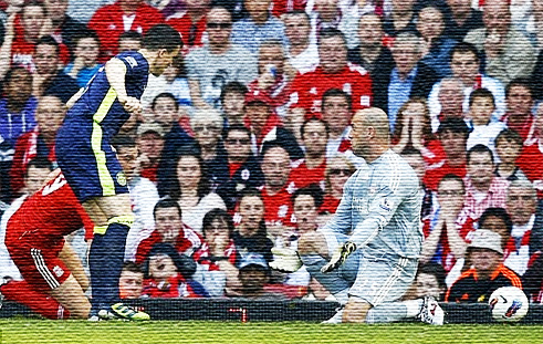 The second half started in much the same vein as the first, with Wigan applying pressure but unable to convert their chances. Dean Whitehead clearly handled in the box (twice, in fact) but no penalty was awarded. Just as the supporters were starting to think it was going to be another of those days, a bit of Maloney trickery freed Beausejour down the left, who played a beautiful first-time cross onto the on-rushing Alcaraz’s head. In a season seriously lacking headed goals, such a fine finish was a sight for sore eyes. You could see what it meant to this committed group of players in their celebrations.
