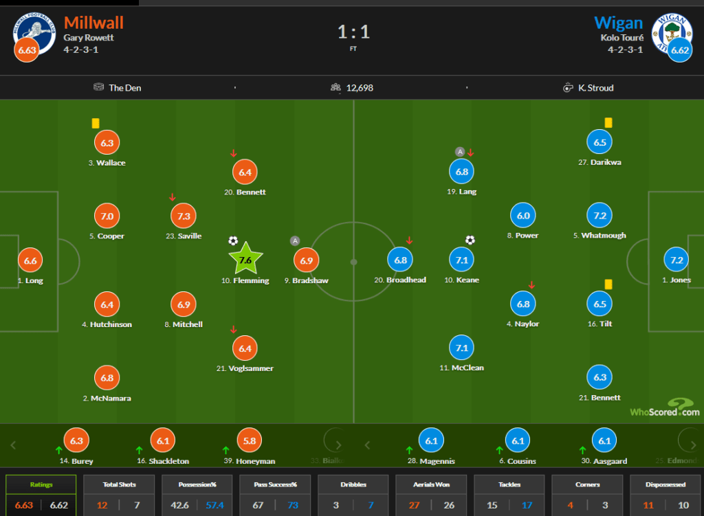 The Den is not an easy place for visiting teams. Before the match started, we were told that Wigan Athletic had only won once in fourteen encounters there. Moreover, this current Millwall team had a home record of W7D1L2 going into this game.