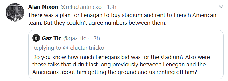 However, Nixon’s comment about an auction for the stadium might suggest that there are other interested parties as well as Lenagan.