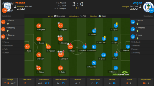 It was reported that this week Paul Cook had his players watch a video of the 4-0 drubbing received at Preston in early October last season. One would have hoped it would have had the desired effect. But it didn’t: the result was marginally better, but the performance was actually worse. PNE were far superior in all aspects and Wigan never looked as if they were in the game.