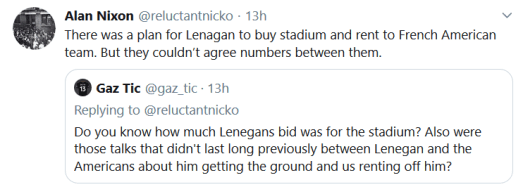 “We are pleased to report that substantial progress has been made with the Council regarding the assignment of the lease. In addition further discussions have taken place between the EFL, the bidder and ourselves and, in our opinion, all information requested of the bidders has been supplied including but not limited to proof of funds for the next two seasons.In the light of this progress, the exclusivity period, which expires today, has been extended. We now await a final answer from the EFL, and no further comment will be made until that is received.”