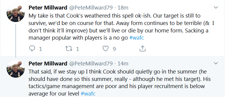 Should Cook stay next season he would almost certainly be facing an uphill task. Most of the players he has closely nurtured will most likely be gone over the summer. Put simply, Cook’s future career prospects would most likely be better served by a move to a bigger club, rather than stay and start a large rebuilding project.