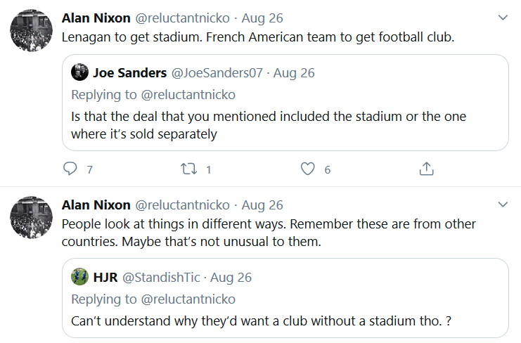“We are pleased to report that substantial progress has been made with the Council regarding the assignment of the lease. In addition further discussions have taken place between the EFL, the bidder and ourselves and, in our opinion, all information requested of the bidders has been supplied including but not limited to proof of funds for the next two seasons.In the light of this progress, the exclusivity period, which expires today, has been extended. We now await a final answer from the EFL, and no further comment will be made until that is received.”