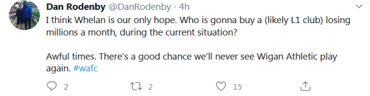 Most fans realise that without Danson the club could have ceased to exist. They are both relieved and appreciative, currently accepting his plans on running the club sustainably. However, with the billionaire due to take over full control of Wigan Warriors in November there are concerns of what will happen with the same person owning both the football club and the rugby league club. There are questions about whether the DW Stadium, currently under football club ownership, will be regarded as a separate entity, owned by neither club, but by Danson himself.