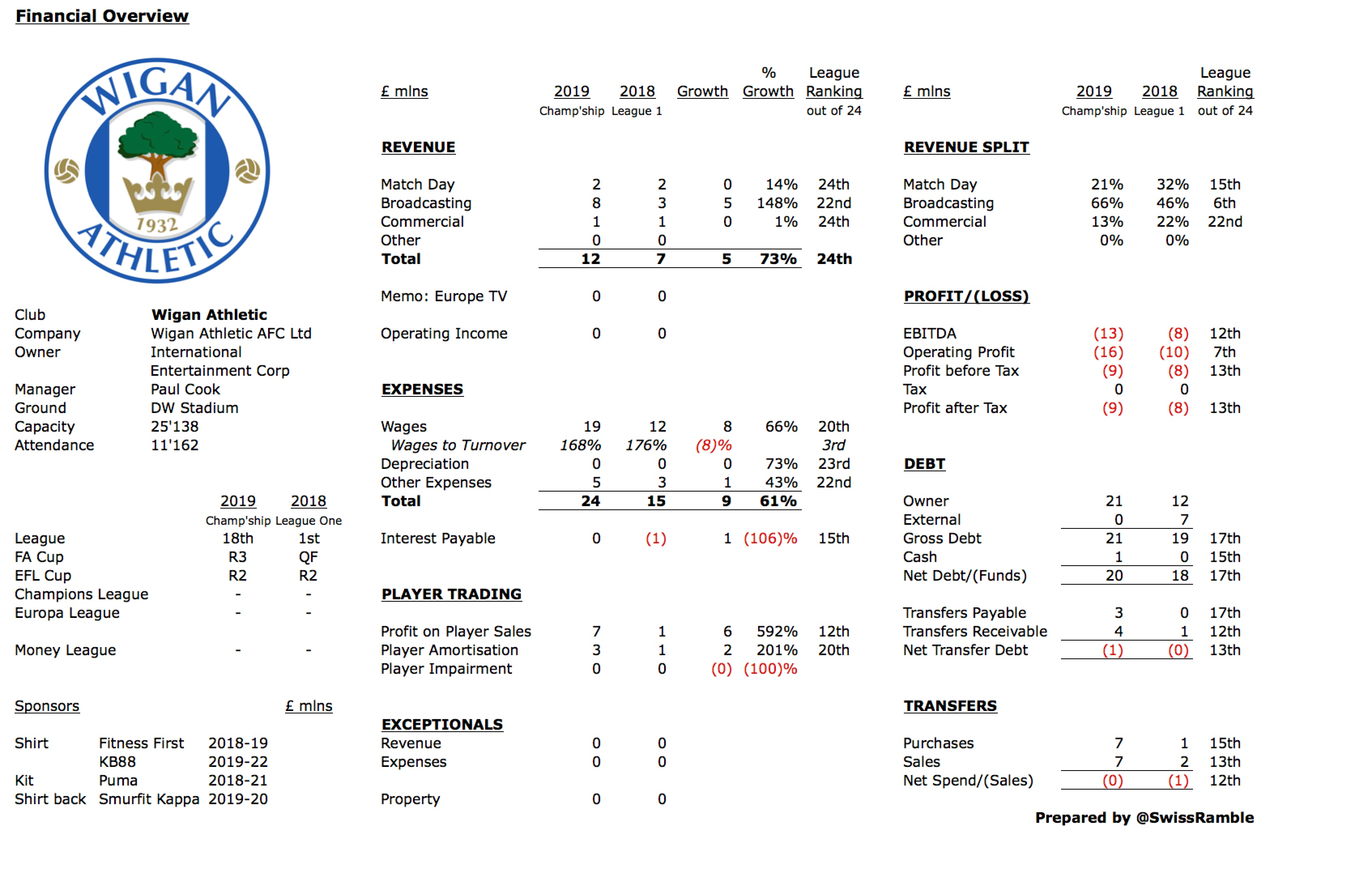 Given the number of players remaining at the club on bloated salaries given them by Phoenix 2021 it is unlikely that Latics will break-even financially this season. Reports suggested the budget will be set at around a third of that of least season, bringing to a figure around £6m, well over the average for the division.
