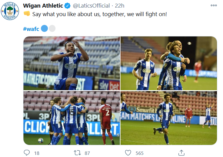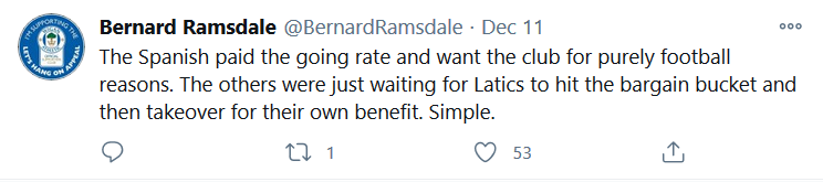 However, the tweets from Latics fans were almost exclusively related to a communique from the EFL regarding the takeover. They once again indicated the concerns of the fans over the stalling of the takeover process that the EFL need to ratify.