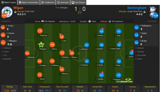 Moore eventually went on to score 12 goals that season, several of which were of very high quality. It could be argued that he had got used to playing in the Championship and had looked more self-assured. But more than that it was the improvement in the football played by the team as a unit that enabled Moore to showcase his skills. As the season had progressed the hoofball had lessened. Midfielders were dropping back to receive the ball, even if space was tight. Moves were being built up from the back and the defenders were taking more responsibility in retaining the ball. With better ball retention the opposition were less able to constantly pressurise the Wigan defence. Put simply, Moore began to flourish as the team began to play football that had more of an emphasis on possession.