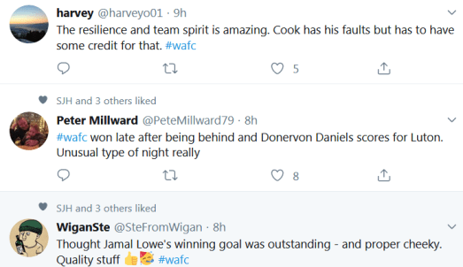 Just two minutes later Sunderland had scored through a soft penalty conceded by Tendayi Darikwa. They went on to win the game through another “soft” goal from their centre forward who had risen to head home without sufficient challenge from the Wigan defence. The smooth, fast-flowing football of the first quarter of the game had dissipated, with the long ball rearing its head.