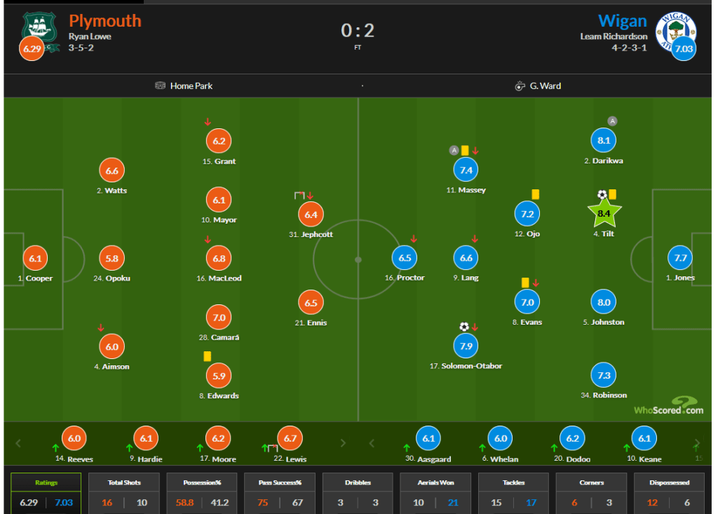 Wigan’s unbeaten run of 12 league games has come to an end. An awful penalty decision given against them after 53 minutes proved to be a psychological blow from which they could not recover. Latics had played well in an entertaining first half, holding a strong Wednesday side goalless, but for some reason Leam Richardson saw a need to reshuffle his team half way through.