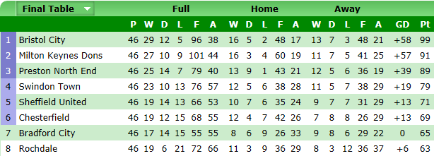They were to hold those 1st and 2nd positions at the end of the season. Moreover Preston, Swindon and Sheffield United were to hold their playoff places:
