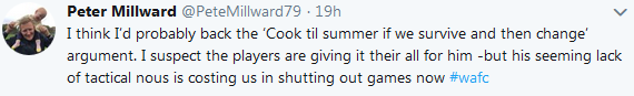 A feature of Cook’s strategy in the two games since the season restarted is that he has used less substitutions than the opposition managers. Tony Mowbray used five yesterday whereas Cook used three, with Joe Garner coming on in time-added-on. The upside of Cook’s approach is that it has caused less disruption to the flow of Wigan’s play. The downside is that there is another match coming up on Tuesday and some players, Jamal Lowe and Kieffer Moore in particular, looked very tired in the closing minutes.