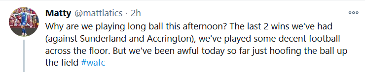 Yep, playing it out the wings is creating loads. That long ball from the back just concedes possession. With a bit more confidence we will be reet.