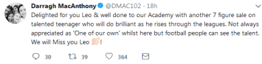 “Leo has been one of the best young players in the EFL over the past couple of seasons, this is a really strong addition to our squad. I am looking forward to working with Leo and believe he will embrace the challenge of Championship football here at Wigan Athletic. Everyone has to remember Leo is just 19 and has his best years ahead of him but he certainly has the foundations to become a top level player.”