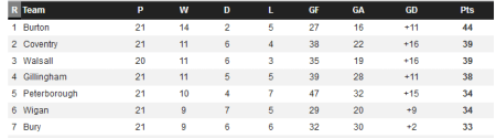 There are those who argue that League 1 is weaker this season than it was a couple of seasons ago when Latics were there. Such an argument is purely academic and is hard to substantiate. What we can see at this stage is that, despite their outstanding record in the season so far, Latics are being pursued by a pack of teams. A comparison with the table around this time of year two years ago shows that the pack of this season is overperforming: