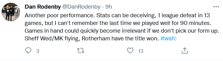 It has been a pretty solid start to the season, with 13 points from 9 games. The home record of W0D3L2 strongly contrasts with that of W3D1L0 away from home. Leam Richardson has kept faith in players who were part of last season’s squad, new signings being used sparingly up to this point.