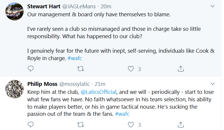 Unless Cook’s team selections and substitutions show a radical change, Latics are heading for the abyss. How many more square pegs in round holes will we see? The depressing scene of Cook berating the fourth official, rather than focus on the pattern of play on the pitch, is getting tired.