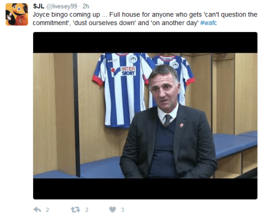 We have once more tried to compile a balanced view of social media comments, following today’s defeat. The reality is that pro-Joyce comments were practically impossible to find, following another sterile performance.