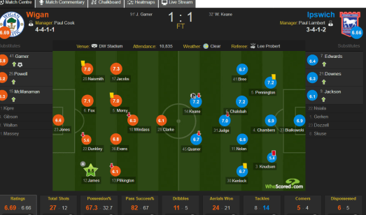 After a mediocre first half Ipswich used their bench in the second period to provide more options. Latics continued to play the same long ball game and Ipswich got their reward in the 78th minute when substitute Norwood picked up a loose ball following a well flighted free kick from Lee Evans. Many of us were hoping that Richardson would utilise the flair of Thelo Aasgaard and maybe even change the shape, but his riposte was to make a like-for-like change, bringing on Gavin Massey for Gwion Edwards after 80 minutes. The out of favour Humphrys was brought on after 90 minutes for Tom Pearce.