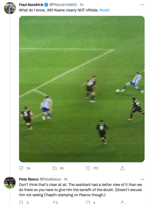 It was a frustrating afternoon with another woeful refereeing performance in a game largely devoid of good football. With Latics a goal up Will Keane was adjudged offside when he put the ball in the back of the net. It was the tightest of decisions signalled by the linesman. If the goal had been allowed Wigan would surely have gathered the three points. As Paul Cook would say: it is a game of fine margins.